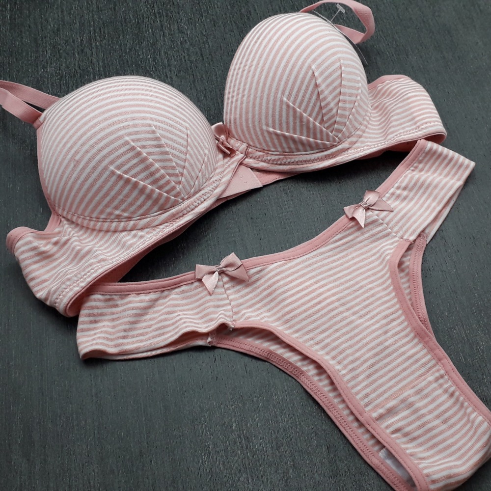 Conjunto confeccionado em microfibra. É uma peça que une a modelagem básica com a estampa de listras que é super tendência!Sutiã com bojo fechamento traseiro por colchetes e alças reguláveis.